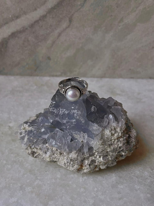 Fresh Water Pearl Forest Boho 925 Sterling Silver Ring