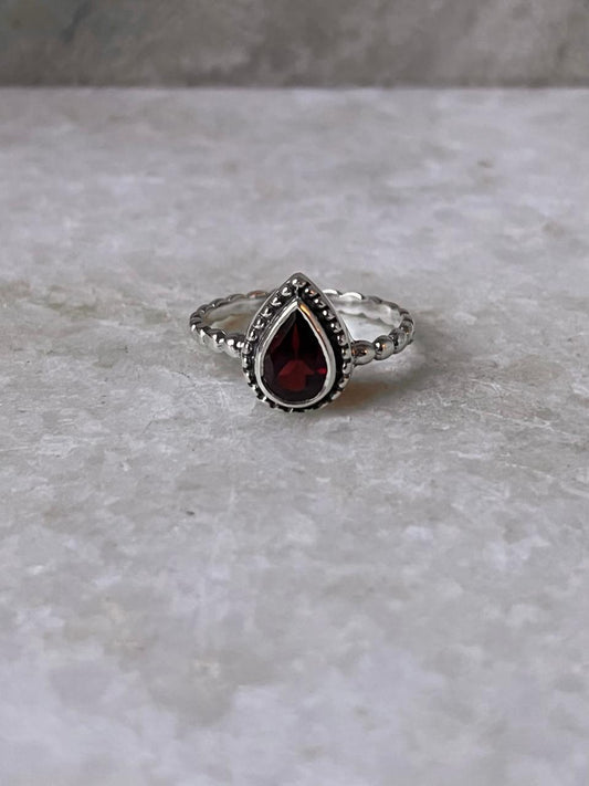 Garnet Pear Dot Band 925 Sterling Silver Ring