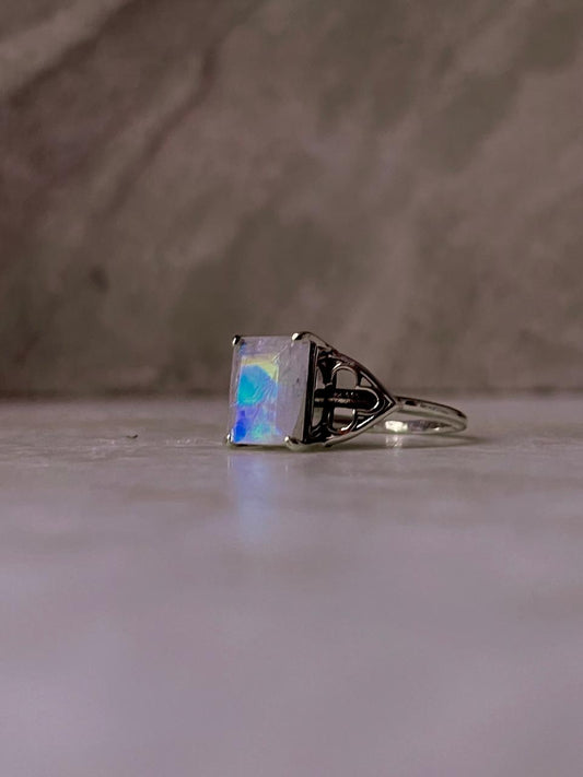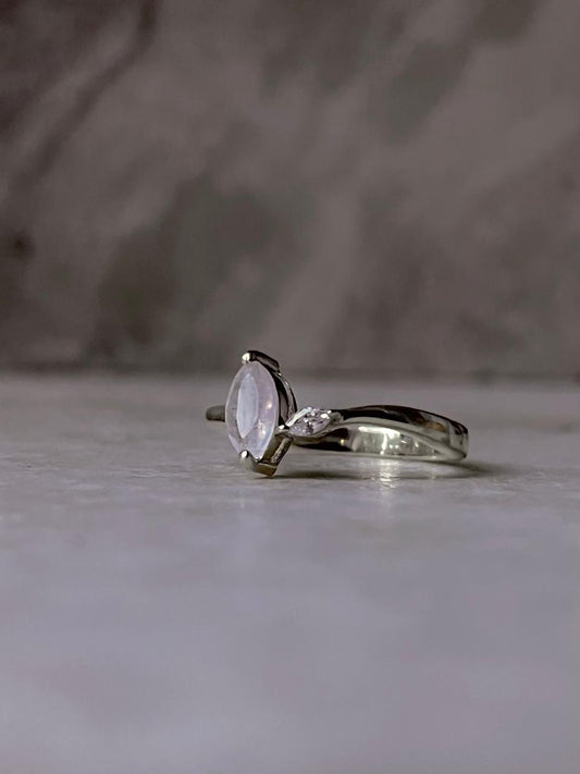 Moonstone Double Stone Marquise Cut & CZ Stone 925 Sterling Silver Ring