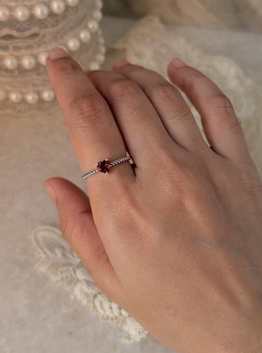 Garnet Heart Solitaire Rope Band 925 Sterling Silver Ring