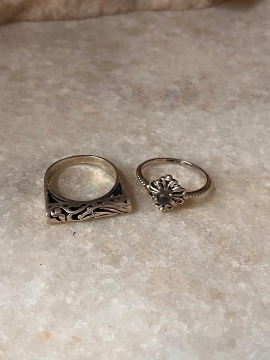 Sunshine/ Sun Engraved Signet & Moon Phases 925 Sterling Silver Stack Set Ring