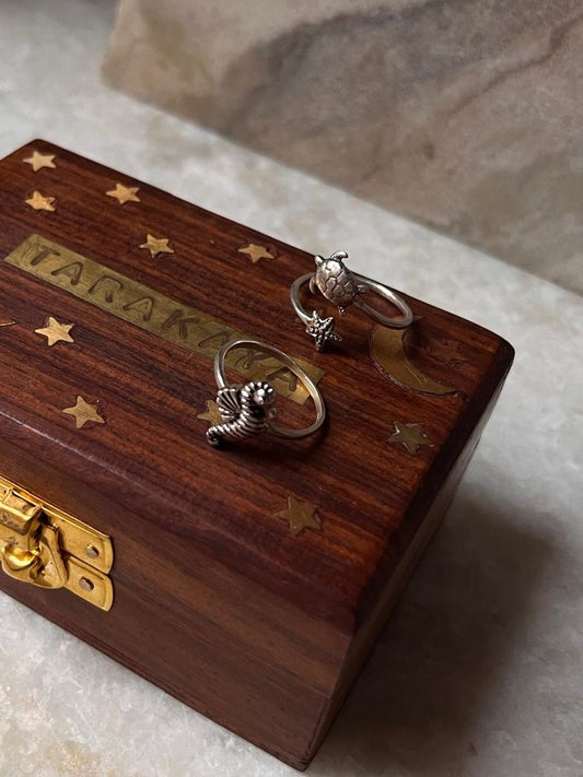 Adjustable Tortoise Starfish & Sea Horse Stack Set 925 Sterling Silver Ring