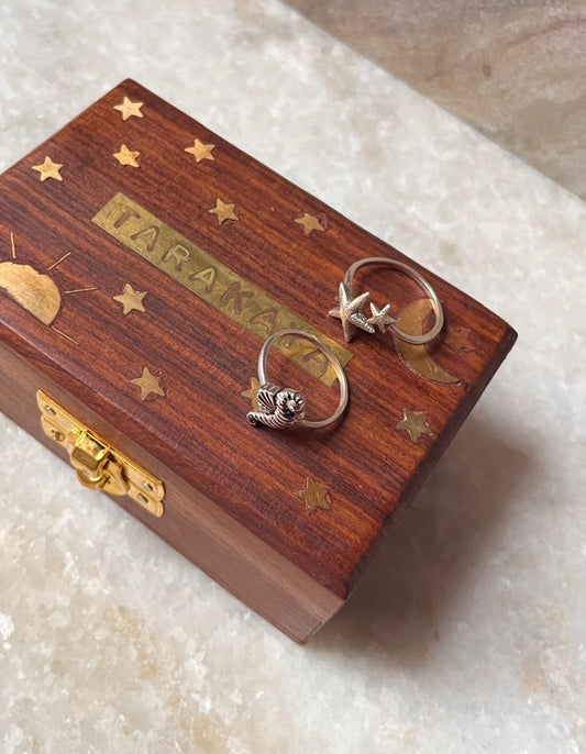 Starfish Adjustable & Sea Horse Stack Set 925 Sterling Silver Ring