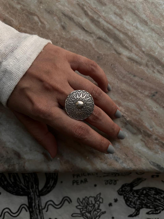 Bohemian Imported Handcrafted Turkish Sun Mandala Adjustable 925 Sterling Silver Ring