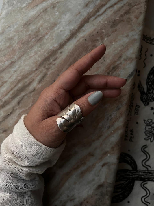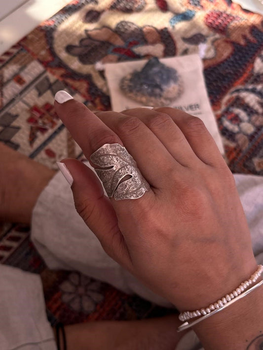 Bohemian Imported Handcrafted Leaf Wrap Adjustable 925 Sterling Silver Ring