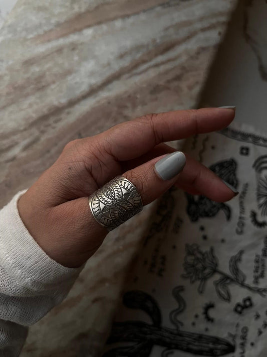 Bohemian Imported Handcrafted Tribal Dome Adjustable 925 Sterling Silver Ring