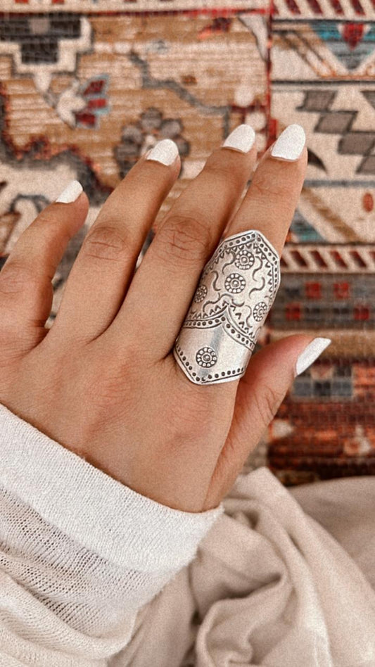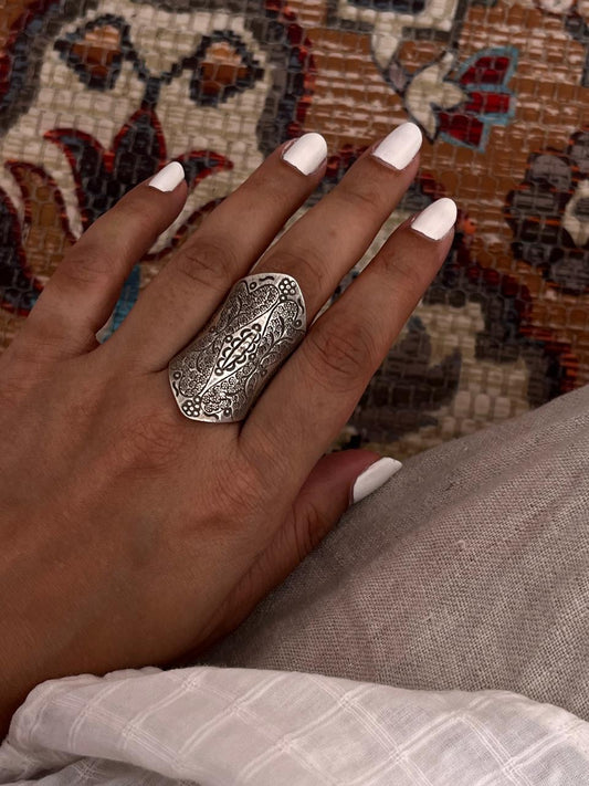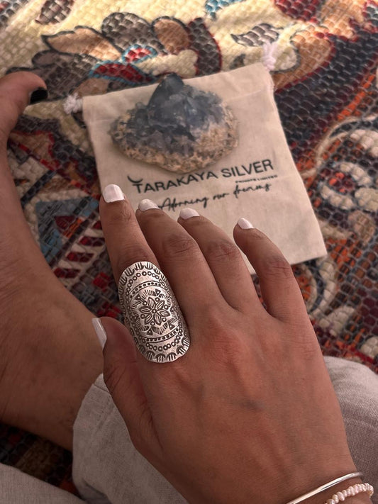 Bohemian Imported Handcrafted Full Finger Statement Adjustable 925 Sterling Silver Ring