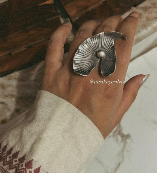 Bohemian Imported Handcrafted Lotus Pond Adjustable 925 Sterling Silver Ring