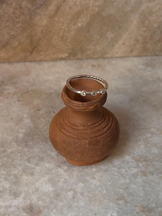 White Topaz 3 Stone Rope Band 925 Sterling Silver Ring