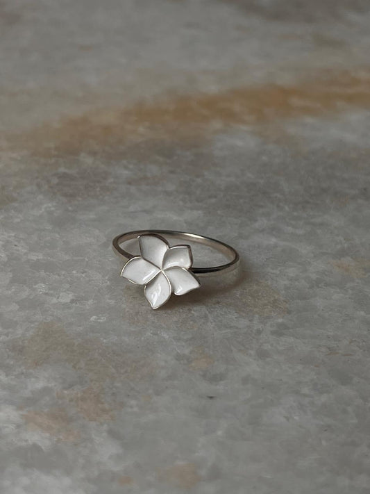 White Enamel Plumeria /Frangipani Flower 925 Sterling Silver Ring