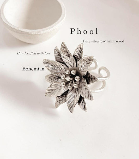 Phool Bohemian Handmade Statement 925 Sterling Silver Adjustable Ring