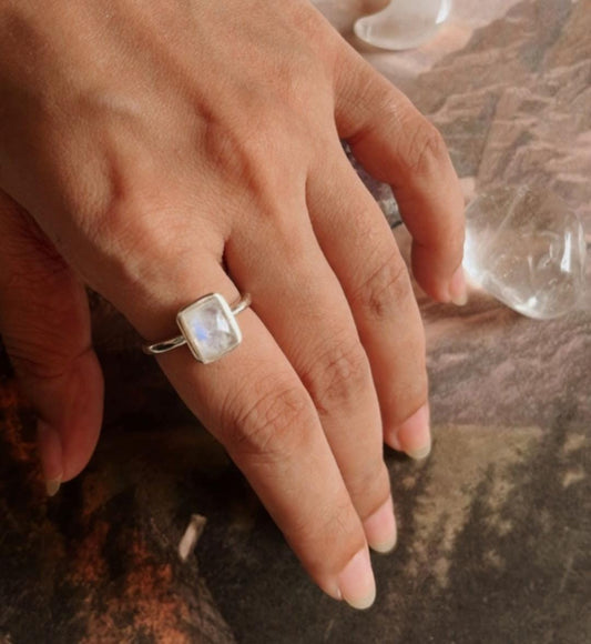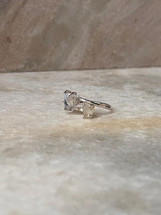 Moonstone Double Raw Uncut Adjustable 925 Sterling Silver Ring