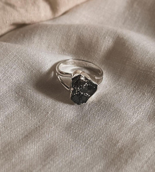 Black Tourmaline Raw Uncut 925 Sterling Silver Ring