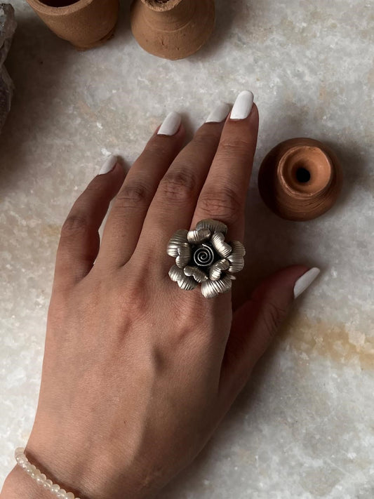 Rose Bohemian Handmade Statement 925 Sterling Silver Adjustable Ring
