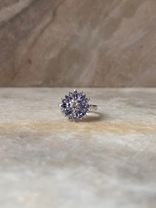 Natural Tanzanite faceted Flower Statement 925 Sterling Silver Ring