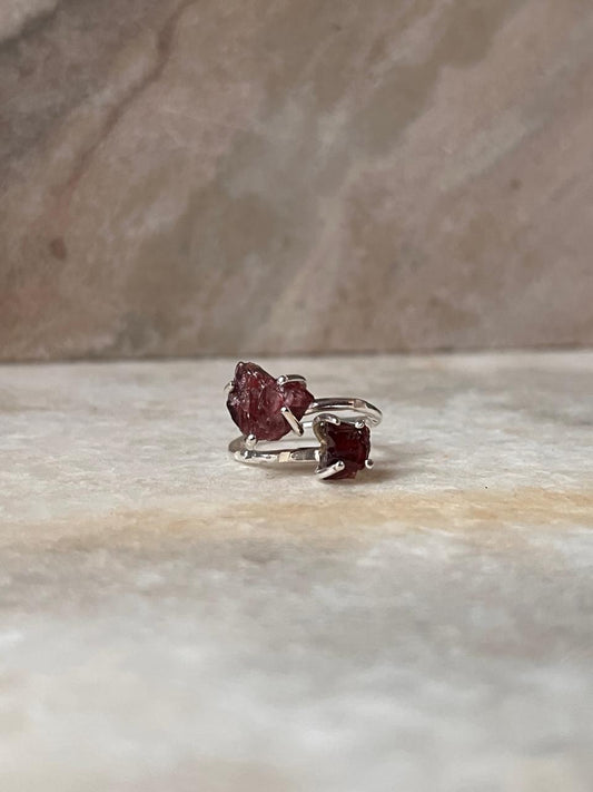 Garnet Double Raw Uncut Adjustable 925 Sterling Silver Ring