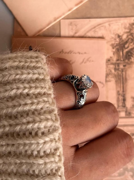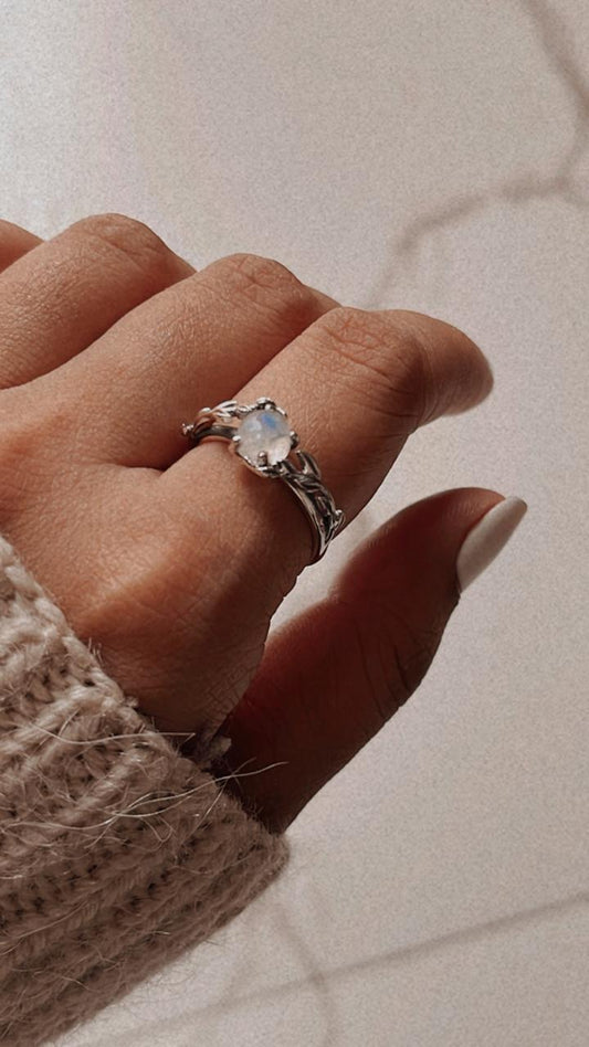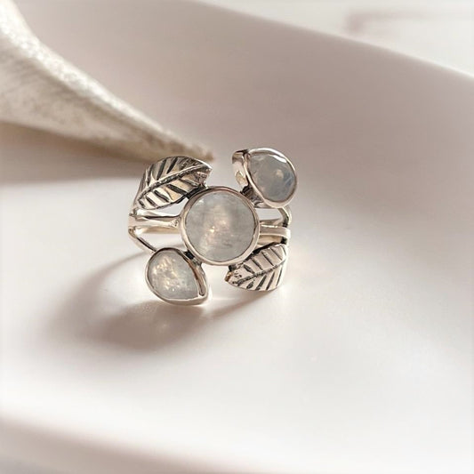 Moonstone Forest Statement 925 Sterling Silver Ring
