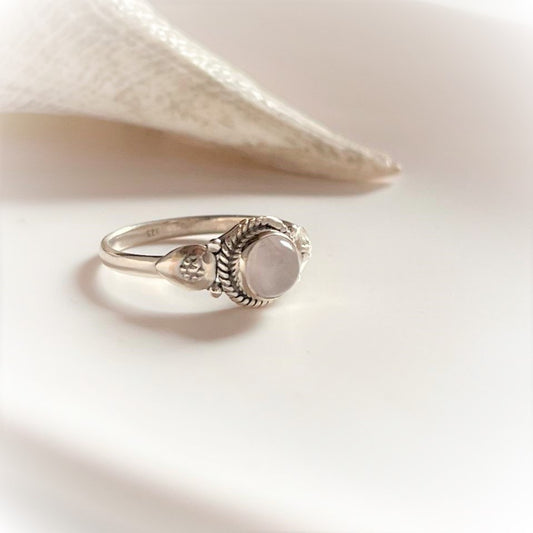 Rose Quartz Round Boho 925 Sterling Silver Ring