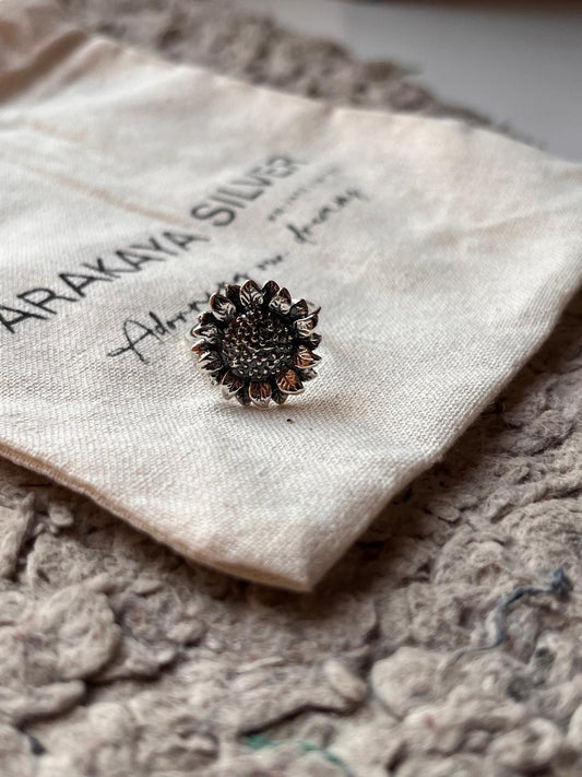 Big Sunflower Detailed 925 Sterling Silver Ring