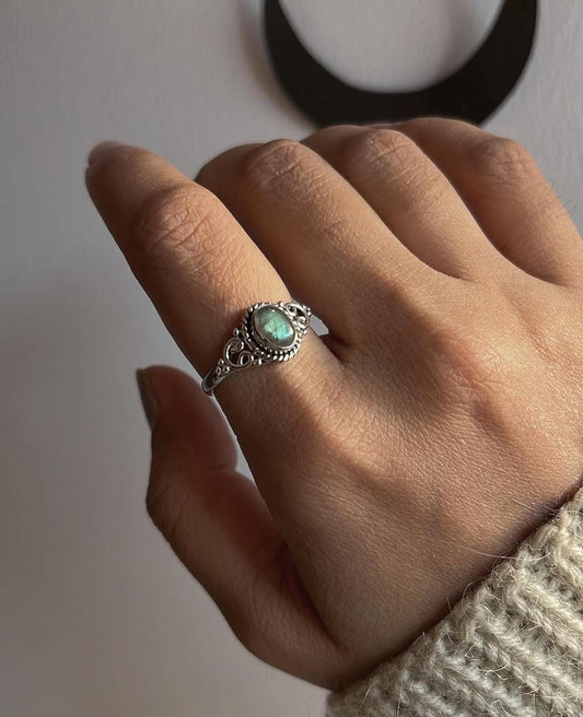 Labradorite Oval Boho 925 Sterling Silver Ring