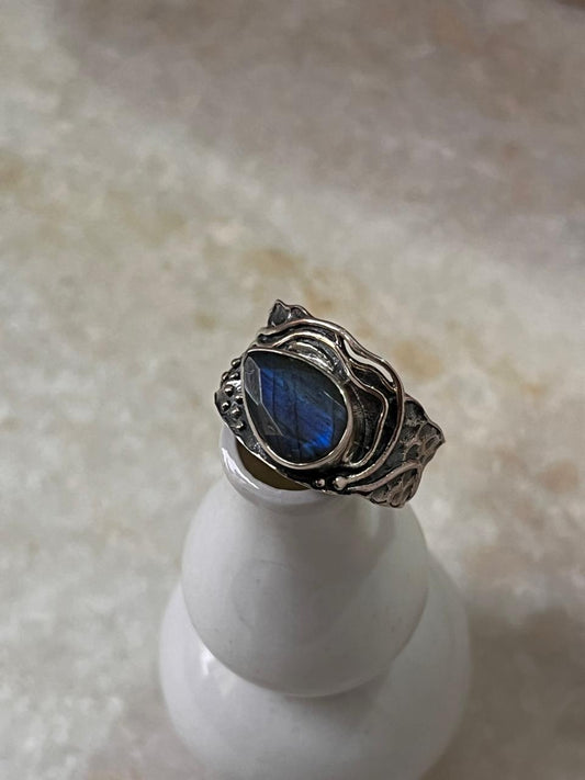 Labradorite Pear Rustic 925 Sterling Silver Ring