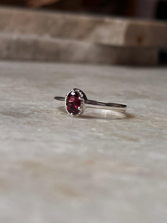Rhodolite Garnet Vintage Solitaire 925 Sterling Silver Ring