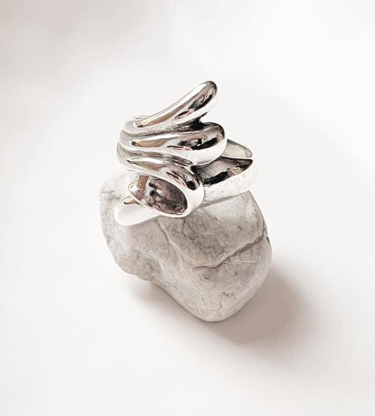 Molten Leaf Chunky 925 Sterling Silver Ring
