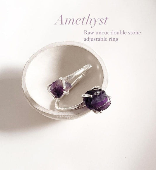 Amethyst Double Raw Uncut Adjustable 925 Sterling Silver Ring