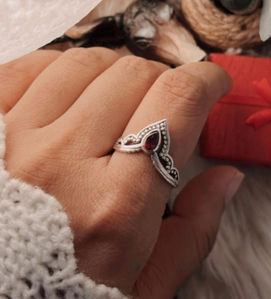 Garnet V Crown Boho 925 Sterling Silver Ring