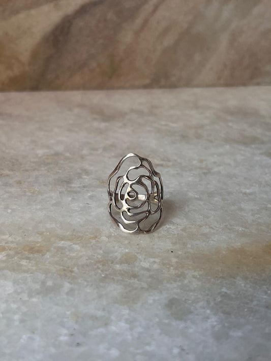 Vintage Rose Filigree 925 Sterling Silver Ring