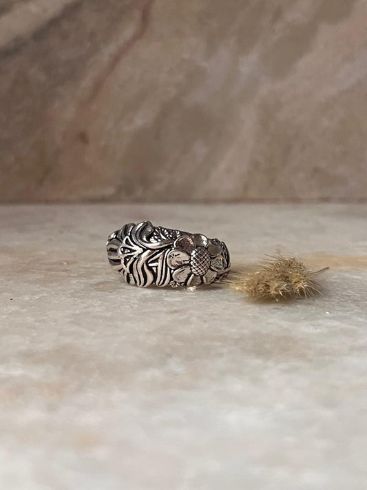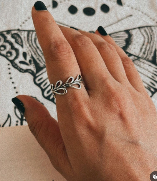 Detailed Garden Motif Adjustable 925 Sterling Silver Ring