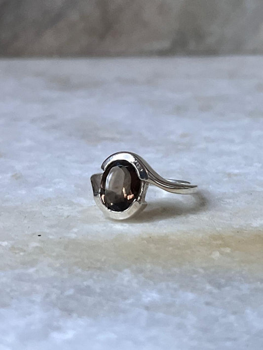 Smokey Quartz Cross Oval Cut 925 Sterling Silver Ring