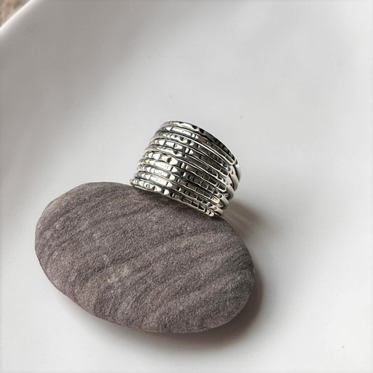 Tribal Textured Wire Stack Band 925 Sterling Silver Ring