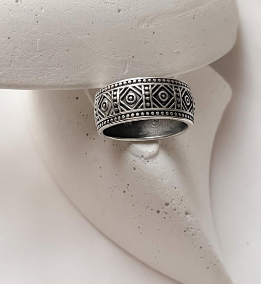 Medium Vintage Motif Band 925 Sterling Silver Ring