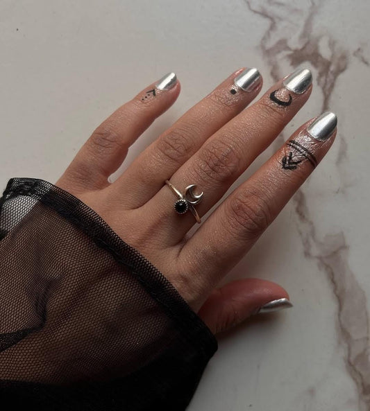 Black Onyx Crescent Moon 925 Sterling Silver Ring