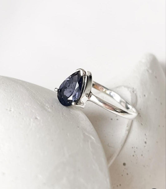 Iolite Solitaire Pear 925 Sterling Silver Ring