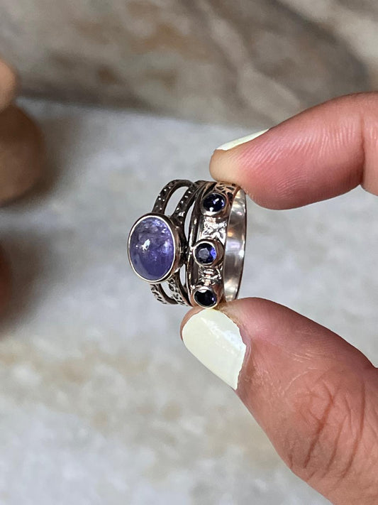 Tanzanite Rustic Stone Statement 925 Sterling Silver Ring