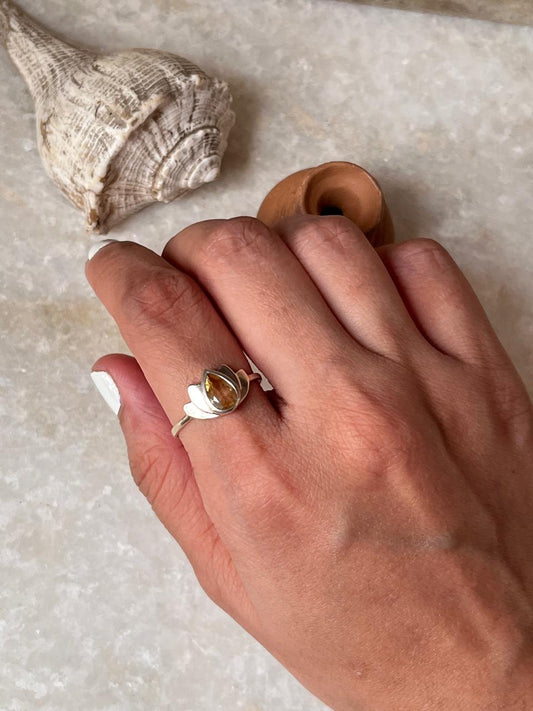 Citrine Divine Lotus 925 Sterling Silver Ring