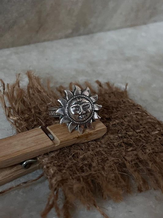 Surya Dev / Sun / Sooraj Tribal Boho Adjustable 925 Sterling Silver Unisex Ring