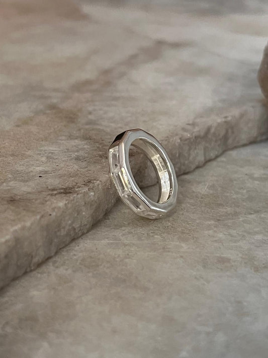 Clear Quartz Five Baguette Stone 925 Sterling Silver Ring