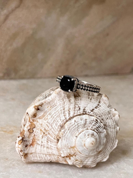 Black Onyx Square Cut Vintage 925 Sterling Silver Ring
