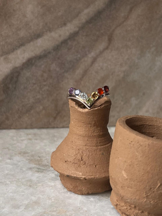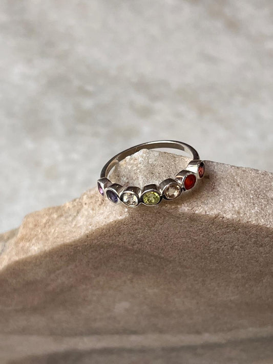 Seven Chakra Round Eternity Band 925 Sterling Silver Ring