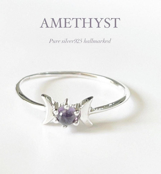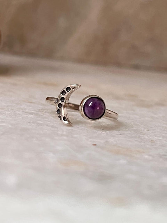 Amethyst Moon Phases 925 Sterling Silver Ring