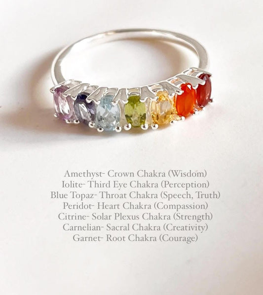 Seven Chakra Eternity Band 925 Sterling Silver Ring