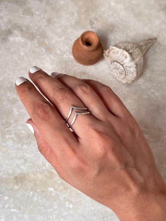 Double V Stackable 925 Sterling Silver Ring