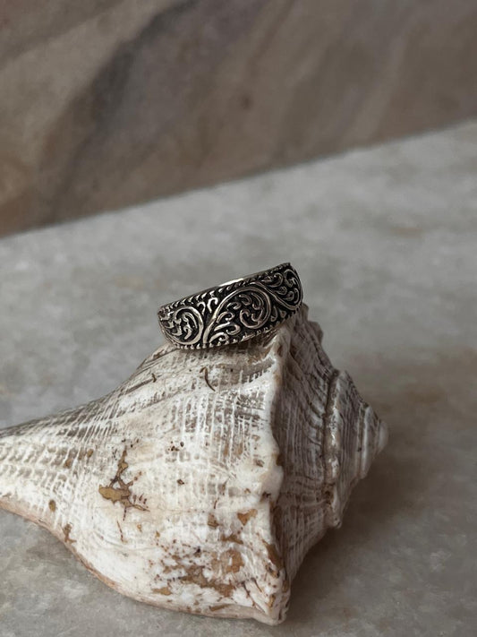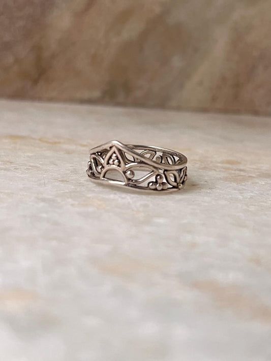 Floral Garden Boho Band 925 Sterling Silver Ring