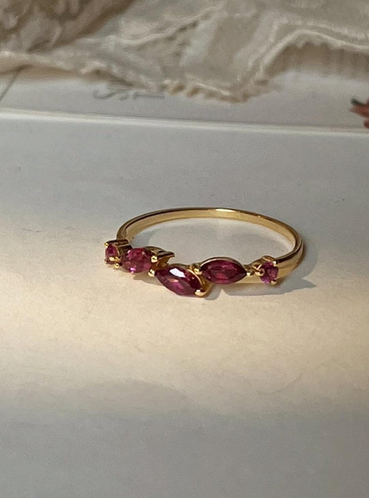 Gold Vermeil Rhodolite Garnet Leafy Minimal 925 Sterling Silver Ring