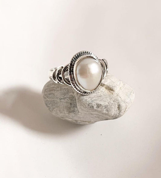 Fresh Water Pearl Oval Boho 925 Sterling Silver Ring