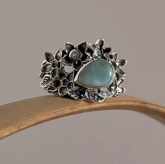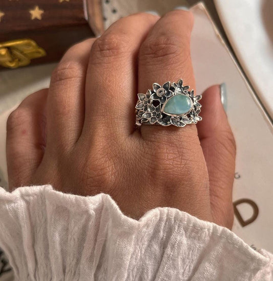 Forest Larimar Statement 925 Sterling Silver Ring