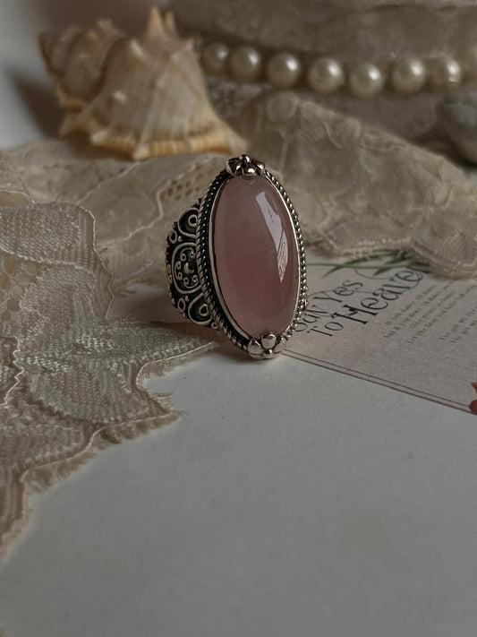 Rose Quartz Boho Oval Statement 925 Sterling Silver Ring